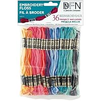 Janlynn Embroidery Floss is a brilliant six strand thread made of 100% mercerized cotton. Perfect for cross-stitch, counted thread, embroidery, needlepoint, smocking, counted bead work, crewel, creative embroidery, punch embroidery, applique, and quilting. Great for making friendship bracelets, worry dolls, shoelaces and more. Includes 36 skeins per package and 8 meters per skein. Variegated- A variety of colors including Red, Yellow, Orange, Blue, Purple, Green, and more.
