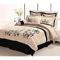 Click Here to see more reviews about: 7 Pieces Beige and Black Embroidery Asian Floral Micro Suede Comforter Set Bed-in-a-bag Queen Size Bedding