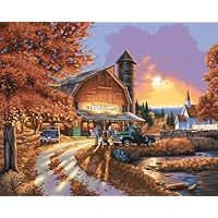 A restored barn has become a wonderful place for families to enjoy a peaceful dinner. The detail and illumination in this nostalgic paint-by-number scene is absolutely incredible. Kit contains high quality acrylic paints, pre-printed textured art board, and #1 round paintbrush. Finished Size: 20-inches-by-16-inches
