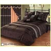 Click Here to see more reviews about: Luxioury Queen Size Faux Silk with Chenille Brown Stripe and Embroidery Comforter Set
