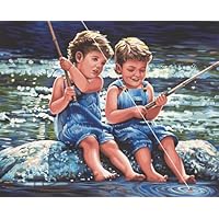 A warm summer's day, a fishing pole, and a pal to share it with-- that's the recipe for a memory to last a lifetime. Bring that scene to life with this paint by number design. Kit contains high quality acrylic paints, pre-printed textured art board, and a #1 round paintbrush. Finished Size: 20-Inch by 16-Inch