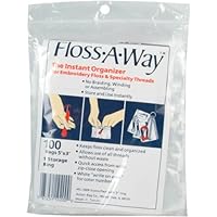 ACTION BAG-Floss-A-Way.Instant organizer for embroidery floss & specialty threads. No braiding; winding or assembling. Store and use instantly. Keeps floss clean and organized. Allows use of all threads without waste. Quick access from wide zip-close opening. White write on area for color number. Size: 3x5in. 100 per package. 3in ring included to keep bags in order.Imported.