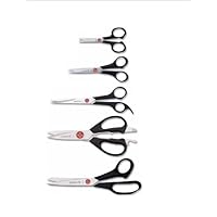 The most popular style of shears, the 8 1/2" dressmaker is useful for almost any sewing or quilting project!A good pair of all-purpose shears is a must-have in any kitchen.These 8 ½ Mundial shears are great for cutting almost anything in the kitchen, including boneless chicken, herbs, and vegetables.Not only that, but the shears contain a built-in bottle opener and nut cracker!Meanwhile, the take-a-part blades separate easily for efficient cleaning.These 7 1/2" barber shears are ideal for cutting hair or working with sheer/delicate fabrics. With the micro-serrated edge, you will get a clean cut on even the sheerest fabrics!These 5 1/2" hobby/craft scissors are the perfect accessory for scrapbooking, sewing, and paper crafts.Voted "Best for Kids" in the May 2005 issue of Real Simple magazine, these [1]4 1/4" school/pocket scissors are perfect for kids' craft projects.Even with rounded tips and the non-slip handle for safety, the cut is just as smooth and easy as the "grown-up" alternatives.As part of Mundial's lightweight Red Dot line, these shears have a matte black polypropylene handle, for no-slip grip, stainless steel blades and an adjustable pivot assembly.Its knife edge features a precision cut blade that glides through fabric easily and cleanly to the very tip.Perfect for the sewing and crafting enthusiast who prefers a lightweight option but expects the highest quality!