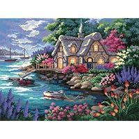 Take a tranquil trip to this delightful cottage nestled at the water's edge. Stitched in cotton this relaxing retreat would not be complete without the colorful flowers surrounding the quiet cove. Kit contains cotton thread, 14 mesh canvas printed in full color, needle and easy instructions. Finished Size: 16-Inch by 12-Inch