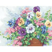 A profusion of pansies and other posies strikes a cheerful note indeed. Rendered in an abundance of rich color, this bouquet is guaranteed to lend a lively ambience to any room of your home. Kit contains high quality acrylic paints, pre-printed textured art board, helpful instructions for easy reproduction of the design shown, and a professional-quality #1 round paintbrush. Finished Size: 14-Inch by 11-Inch