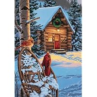 Are these cardinals keeping watch or are they yearning to feel the warmth of the fire inside the cabin? Decorate your home all winter long with this exquisite paint by number scene. Kit contains high quality acrylic paints, pre-printed textured art board, and a #1 round paintbrush. Finished Size: 14-Inch by 20-Inch