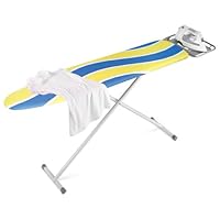 This full-size ironing board stands strong on 2 sturdy steel tube T-legs on a mesh resin surface. This unit includes an iron rest for safe and convenient storage. Plastic caps on the bottom of the legs hold this unit still while in use and it comes complete with an attractive cover with built-in pad. Make ironing a breeze with this ironing board. Features: an iron rest to prevent scorching, folds flat for easy storage, constructed with sturdy, rust-resistant steel frame and equipped with an attractive cover with built-in pad, Dimensions: 54"L X13"W.