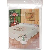 The Iris Stamped Applique Quilt is a kit that includes one 79 x 97 inch double quilt, stamped for embroidery. Material 50 percent cotton and 50 percent polyester permanent press. High quality beautiful results. Made in US.