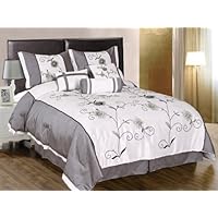Click Here to see more reviews about: 7 Pieces White with Grey and Green Embroidered Lily Comforter Set Bed-in-a-bag Queen Size Bedding