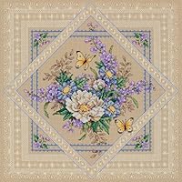 Colorful blooms and lavish borders combine to make an exquisite display. The design is stitched on 14 count beige Aida with cotton thread and features a variety of textured stitches. Kit contains cotton thread, 14 count beige Aida, thread palette, and needle. Finished Size: 14-Inch by 14-Inch