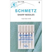 SCHMETZ-Universal Sharp Sewing Machine Needles.Schmetz quality sewing machine needles have been manufactured to exacting standards since 1851.The choice of discriminating sewers world wide; only Schmetz provides the uncompromising; consistent quality that produces the perfect stitch every time.These needles are suitable for a variety of fabrics and can be used with all brands and most models of sewing machines.This package contains five 70/10 needles for use when a perfectly straight stitch is desired such as for top-stitching and pintucks.Imported.