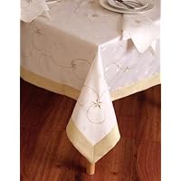 Brand New beautiful Beige with gold star embroidery and gold board table cloth 36x36" square table topper 60x84" OB for 4-6 seats 72x108" OB for 6-8 seats 72x120" OB for 8-10 seats 64" round for 4-6 seats 72" round Condition: Brand New 30 Day Satisfaction Guarantee(NO QUESTIONS ASKED)