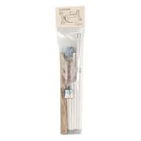 AMERICAN DREAMS-Starter Set Needlework Frame. This frame is made of quality wood. All pieces are hand rubbed and finished. Frames feature metal hardware which is in the frames so there is nothing to strip and the frame will hold a firm tension. An added feature of the concealed hardware is that there are no bolts or nuts that require tools to tighten and no edges to snag your clothing or furniture. These frames offer an attractive means of displaying needlework in process as well as display for a finished piece lending a handcrafted unique look. This Frame Set includes: 6in, 8in, 10in, 12", 14in, 16" and 18" scroll rods (complete with hardware and Velcro), 6" and 8" extender bars, one complete set of four knobs and enough self-sticking velcro for several projects. Made of solid oak. Package measurements: approximately 26-1/2x6x1-1/2". Made in USA.