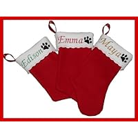 **** These orders are shipped free (First Class Mail) and WILL PROBABLY NOT arrive for Christmas.We have choices for expedited shipping with fees.Even Priority mail MAY Not arrive in time for Christmas.Two (2) Day expedited shipping will make it in time. ***Please We need you to EMAIL at time of order the NAMES or leave in the Gift Message area of your order. indicate on your order or email the name or names to be personalized and color of embroidery thread red, green, gold or silver.You may also choose the following font styles offered.Script 1, Script 2, Script 3, Block or Italic15" Personalized Felt Christmas Stocking with Paw Print for Your Favorite PetPlease indicate on your order or email the name to be personalized and color of embroidery thread red, green, gold or silver.