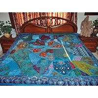 Click Here to see more reviews about: ZARDOZI EMBROIDERED BEADS SARI TAPESTRY BEDSPREAD COVERLET THROW WALL HANGING